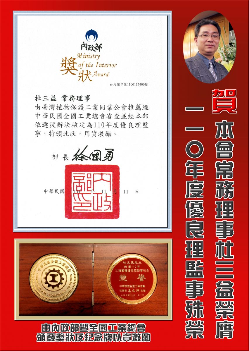杜三益常務理事榮膺110年度優良理監事殊榮