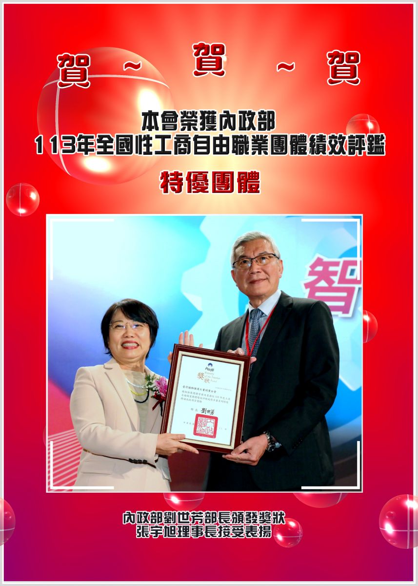 賀~賀~賀~本會榮獲內政部評鑑113年特優團體劉世芳部長頒發獎狀